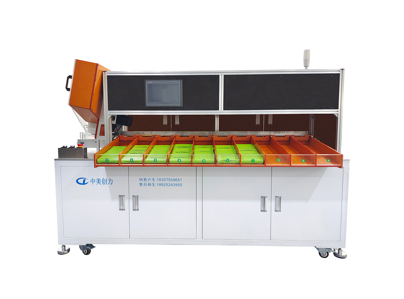 10檔通用電池分選機(jī)是一款用于圓柱電池的內(nèi)阻、電壓等參數(shù)的測(cè)試分選設(shè)備,自帶高精密內(nèi)阻、電壓自動(dòng)測(cè)試系統(tǒng),該設(shè)備根據(jù)在人機(jī)界面軟件上設(shè)定的內(nèi)阻、電壓值精確的將電池送入到指定檔位,系統(tǒng)最多可實(shí)現(xiàn)10檔(9個(gè)OK檔,1個(gè)NG檔)分選。此設(shè)備每小時(shí)可測(cè)試配組電芯4500支左右,且結(jié)構(gòu)設(shè)計(jì)簡潔大方,性能穩(wěn)定。在市場(chǎng)上,是性價(jià)比很高的一款分選設(shè)備之一。